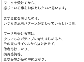 現在、「情報空間の書き換え」の技(ワーク)を習得し、自分にどんどんかけるだけではなく、クライアントさんやお友達、お知り合いの方にもモニターさんになっていただき、いろいろかけさせていただいています。この ...